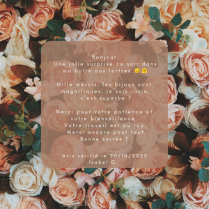 Par souci d'éthique, nos bijoux et accessoires sont réalisés à la commande. Le délai entre le passage de votre commande et la réception de votre colis est variable selon notre charge de travail et la période de l'année.