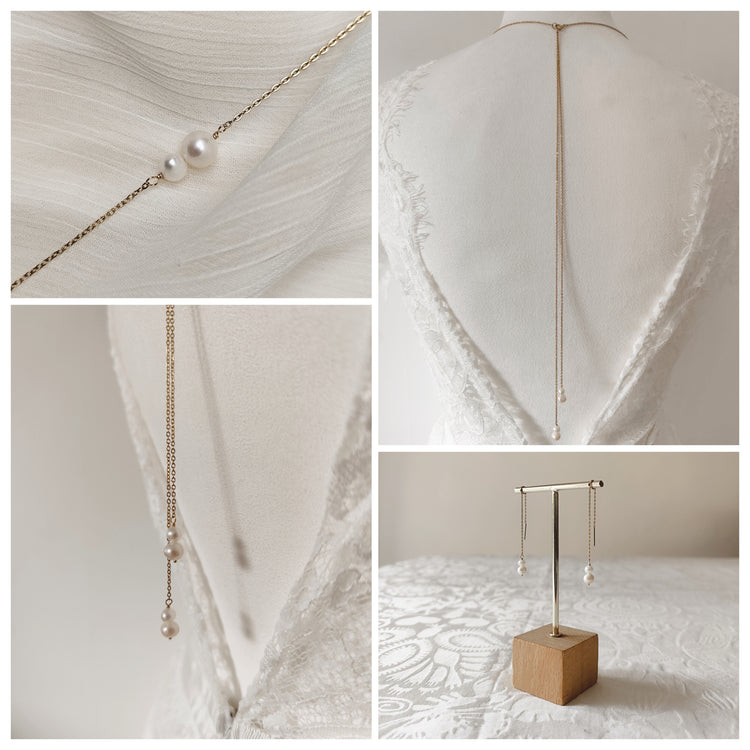 Sa chaîne de dos est détachable et peut ainsi se porter avec un autre collier. De la même manière, le tour de cou de 45 cm peut également se porter seul.